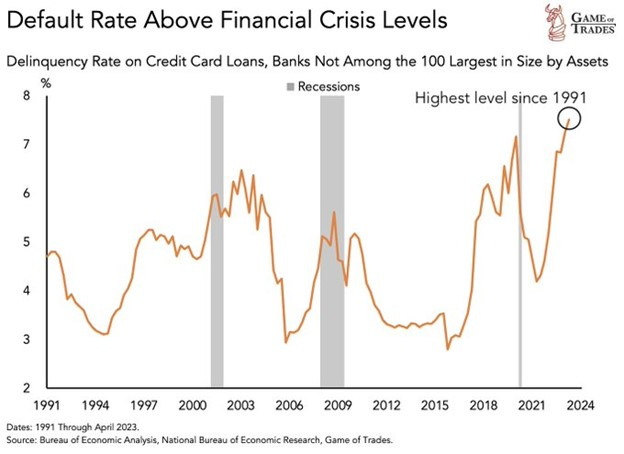 This alone may be just a microcosm, but credit card delinquency rates from small banks are surging as well.