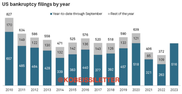 After every period of credit growth, we see an increase in bankruptcies. It is the natural order of things. These bankruptcies need to happen to clear all the malinvestment from the previous cycle. It gets rid of the zombie companies and makes room for new, more efficient companies.