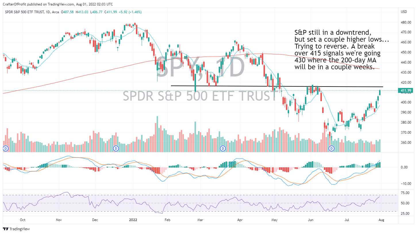 As you can see in the above charts, the price bars are approaching levels of resistance. This week is a major test for the strength of the market. If the markets can blast through this resistance, we’re looking at another 8% higher in the coming weeks… A strong move. And one we can take advantage of. Let’s get ready to start shopping.