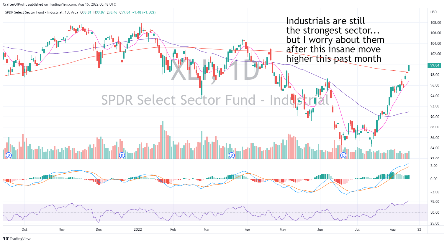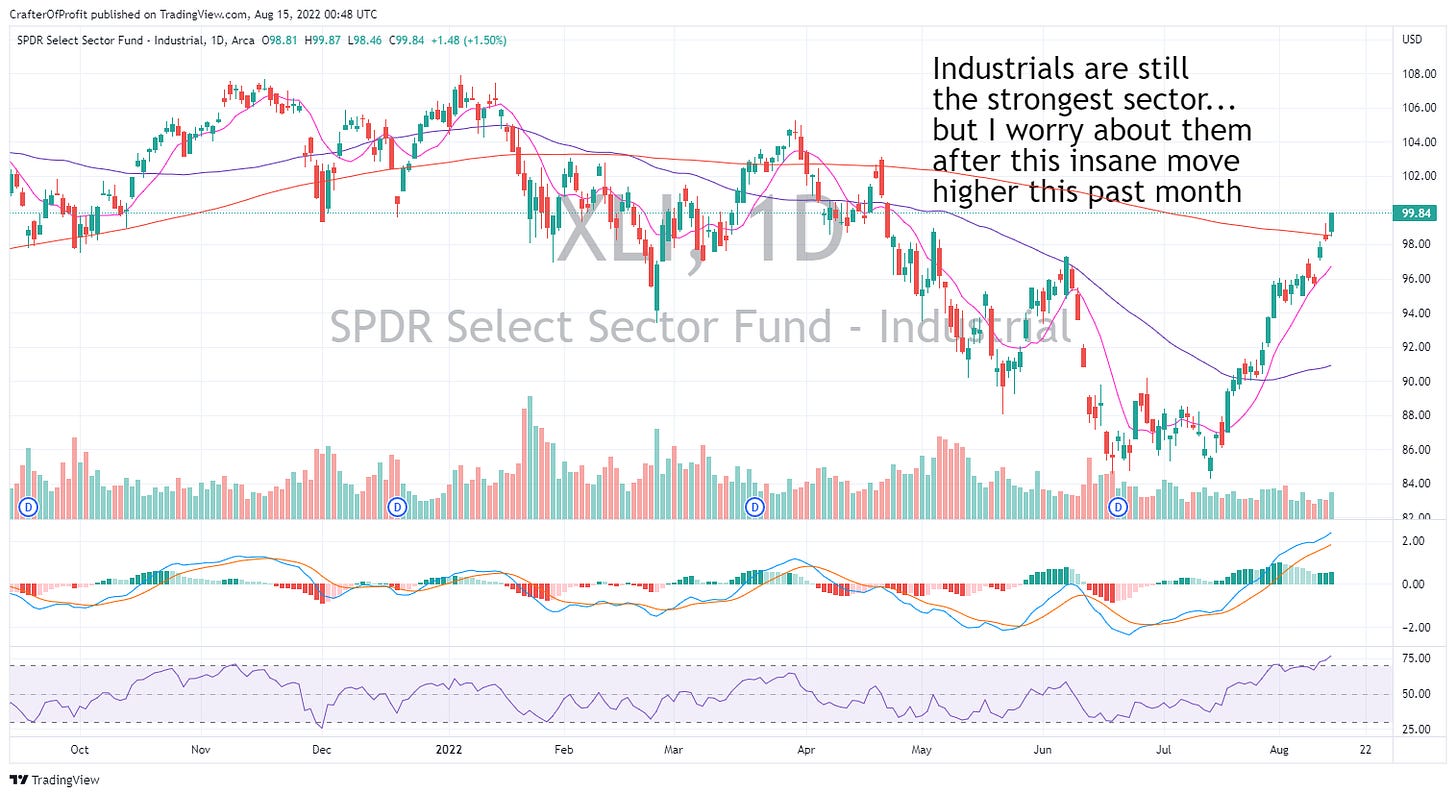 Industrials have surged this past month. And they continue to lead the market higher… But I worry that this move is overextended…