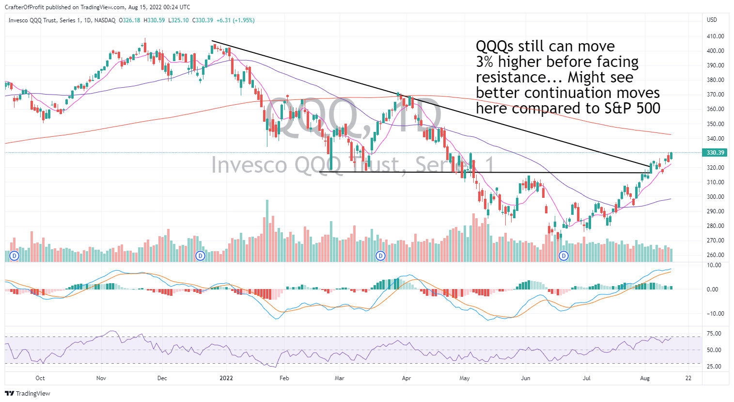 The QQQs are within 3% of the 200-day moving average. But that’s close enough to consider taking profits.
