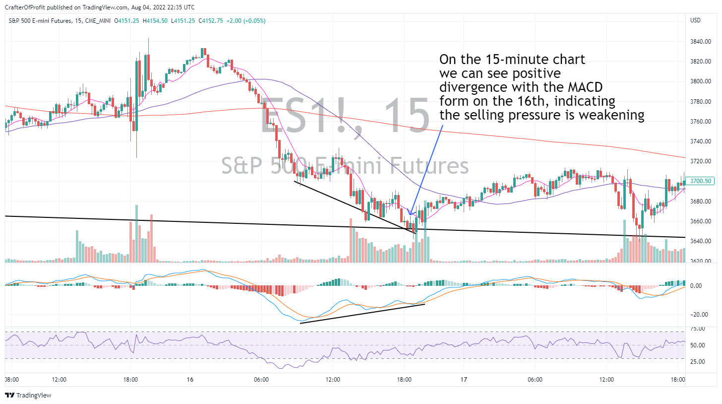 And then on the 16th we saw the MACD diverge as well on the 15-minute chart…