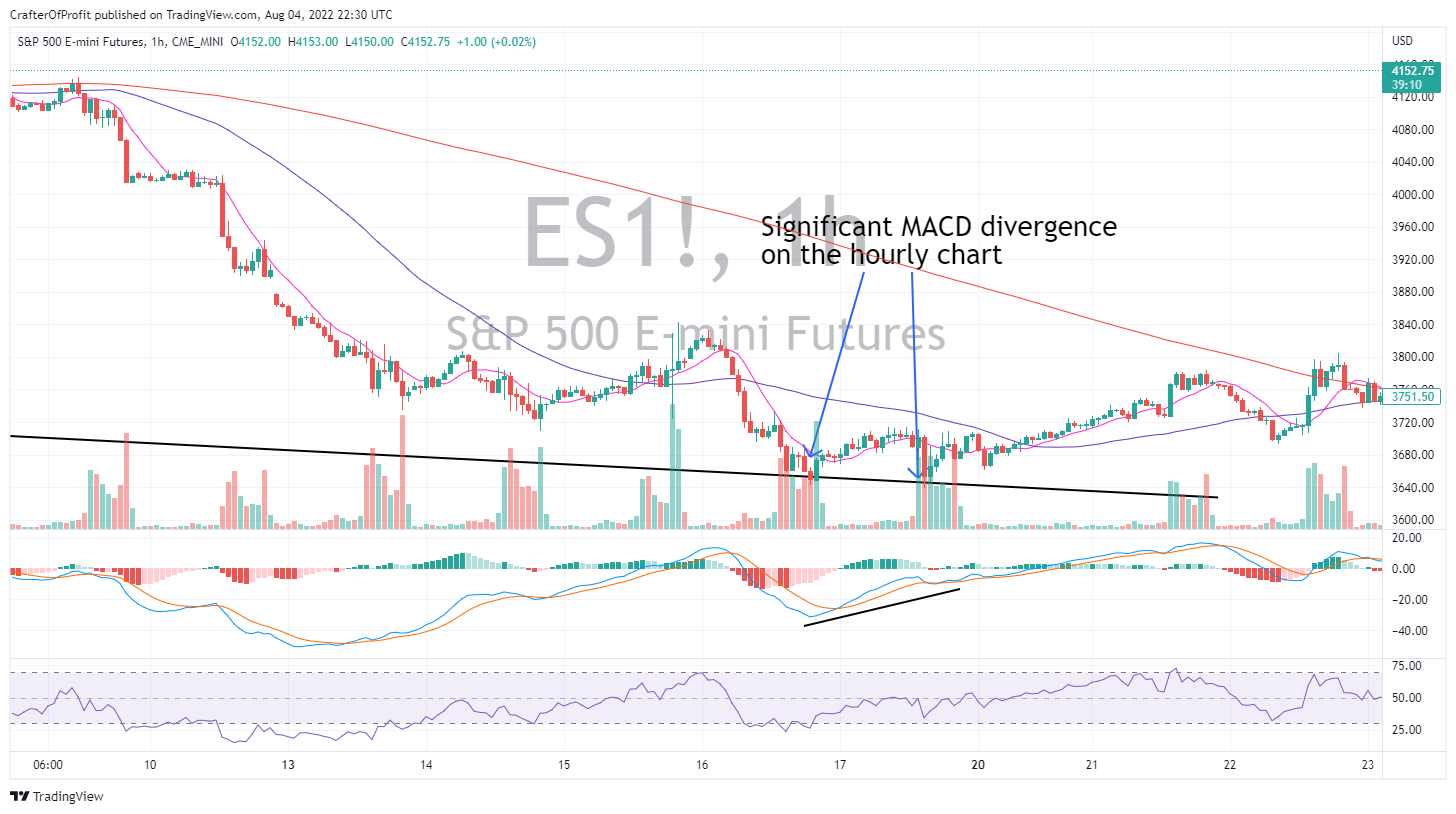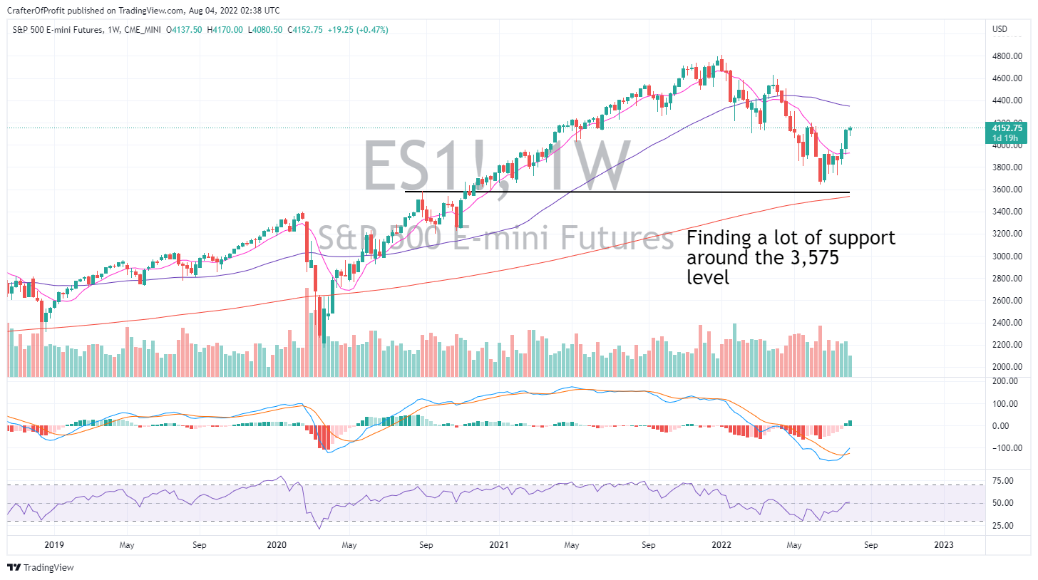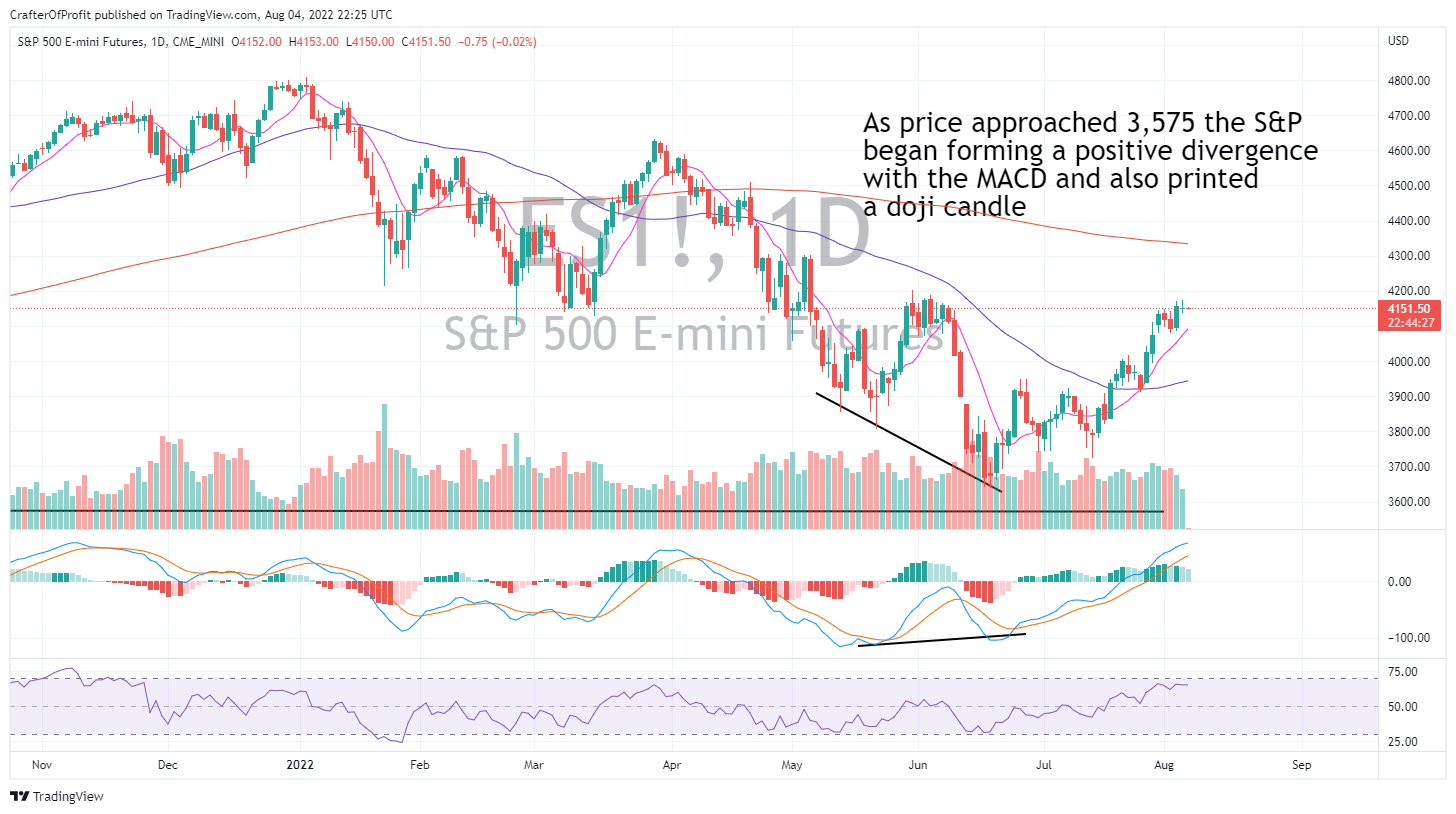 As you can see here, I found a lot of support at the 3,575 level on the S&P 500 Index, as shown by the E-mini Futures (ES). And when the market gets close to these levels, we need to start looking for reversal signals.
