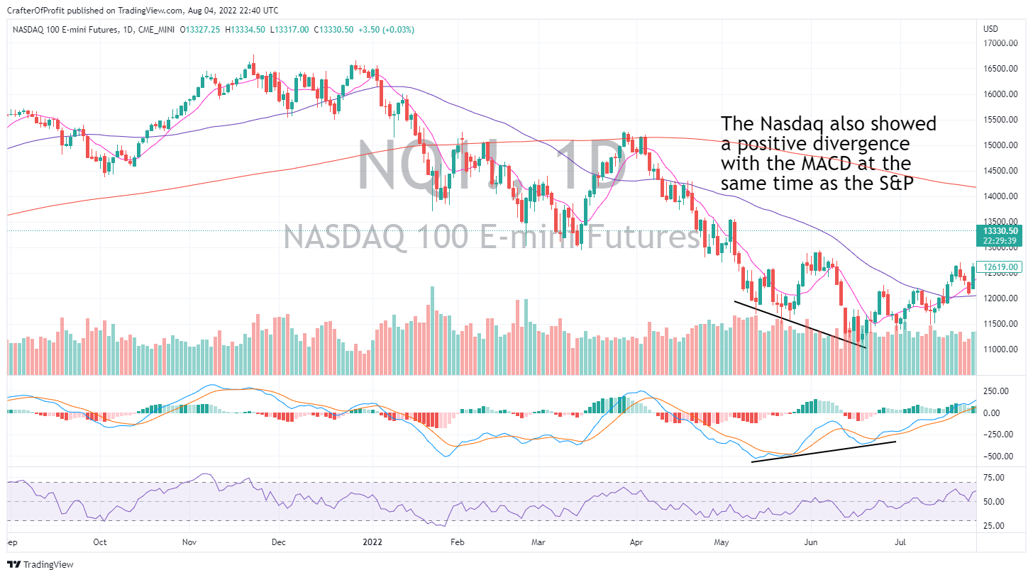 As we can see below, the Nasdaq also showed a positive divergence signal at the same time as the S&P. This increased our odds even further on a major turning point in the market.