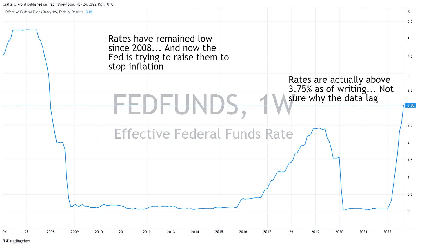 The Federal Reserve cut their Federal Funds Rate to 0% to help stave off the financial collapse in 2008 - 09. And rates have remained ever since.