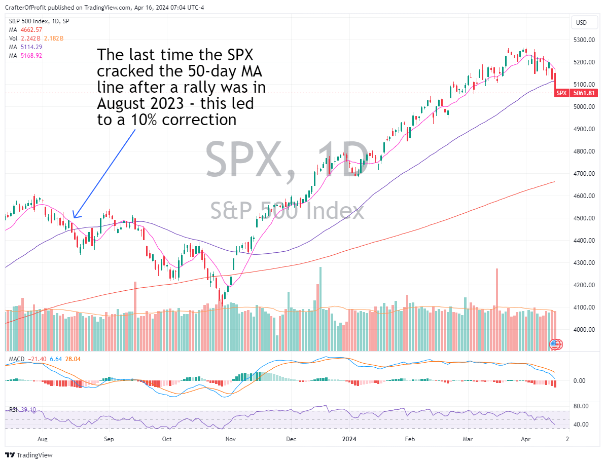 The rest of the market doesn’t look any better. Look at the S&P 500 Index. It just closed below the 50-day moving average (MA). The last time it cracked the 50-day MA after a major rally was in August last year. And the market went on to go about 10% lower.