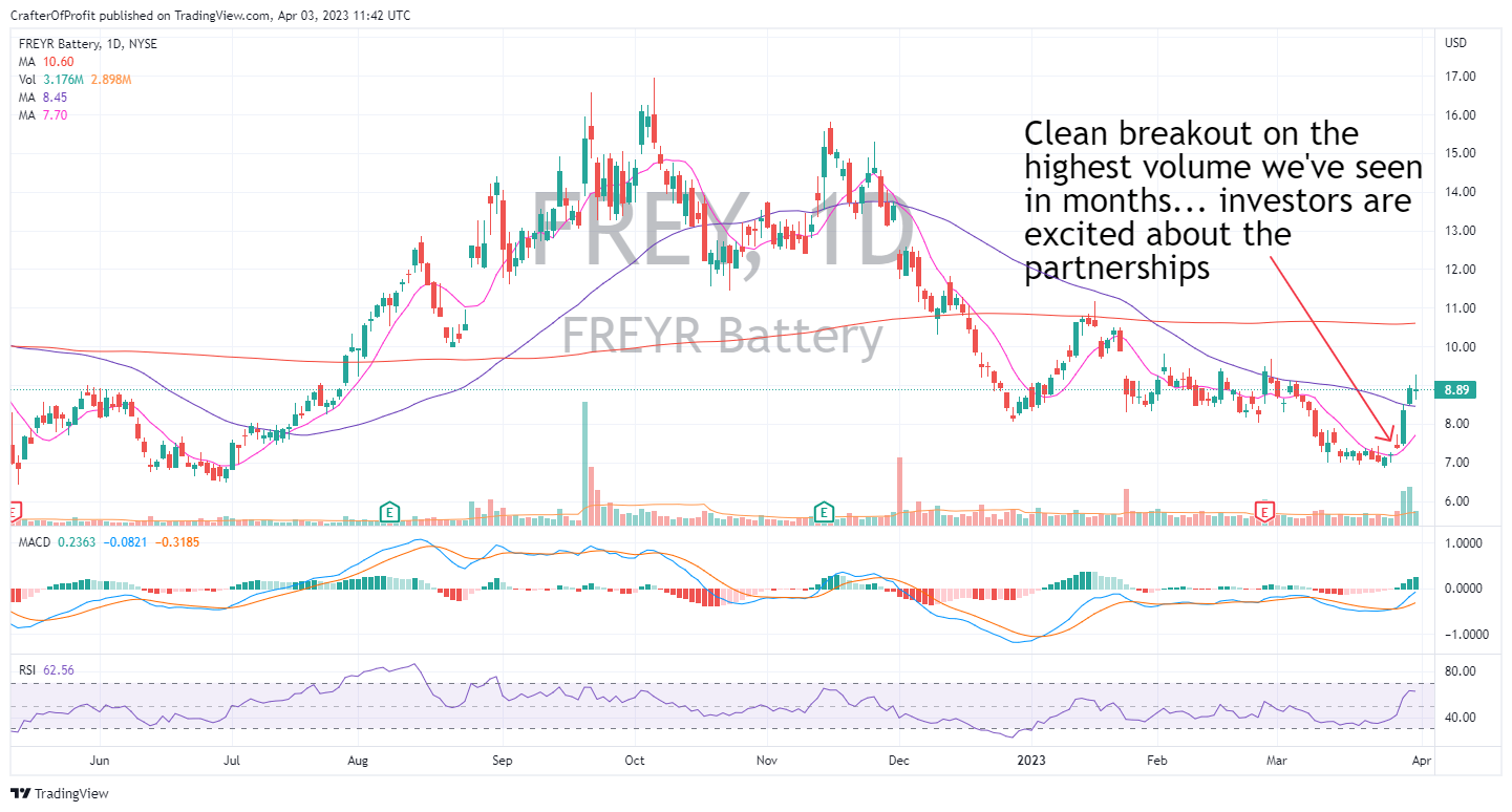 Las Wednesday they announced a potential coalition with Glencore, Caterpillar, Siemens and Nidec. These are monstrous companies that want to pattern with FREY. This all but guarantees FREY’s batteries will get the inputs they need. And they will have several large customers to help pick up adoption of their batteries.