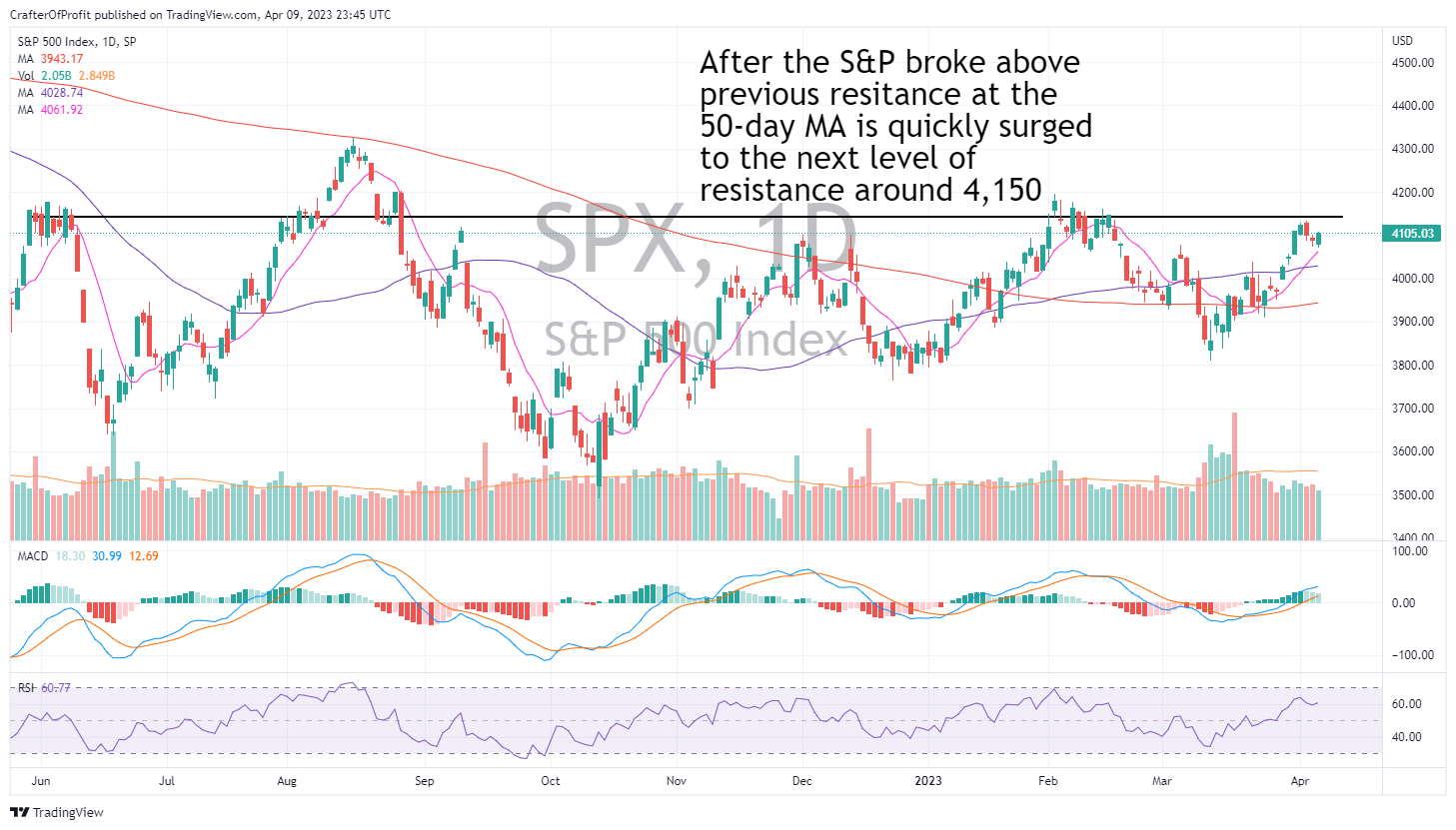 We are still trending up, but we are facing a resistance point at 4,150.