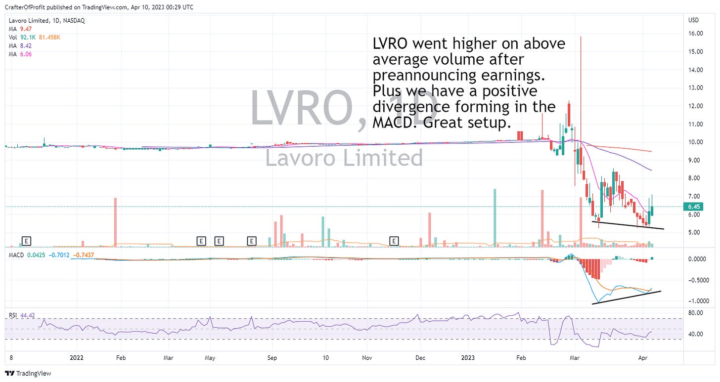 But that’s not why we’re here. We’re here to profit off of episodic pivots. And we have the episode and we have the pivot here with LVRO.