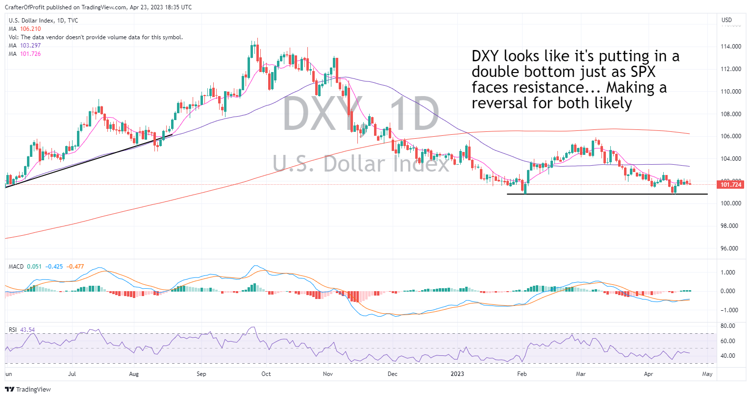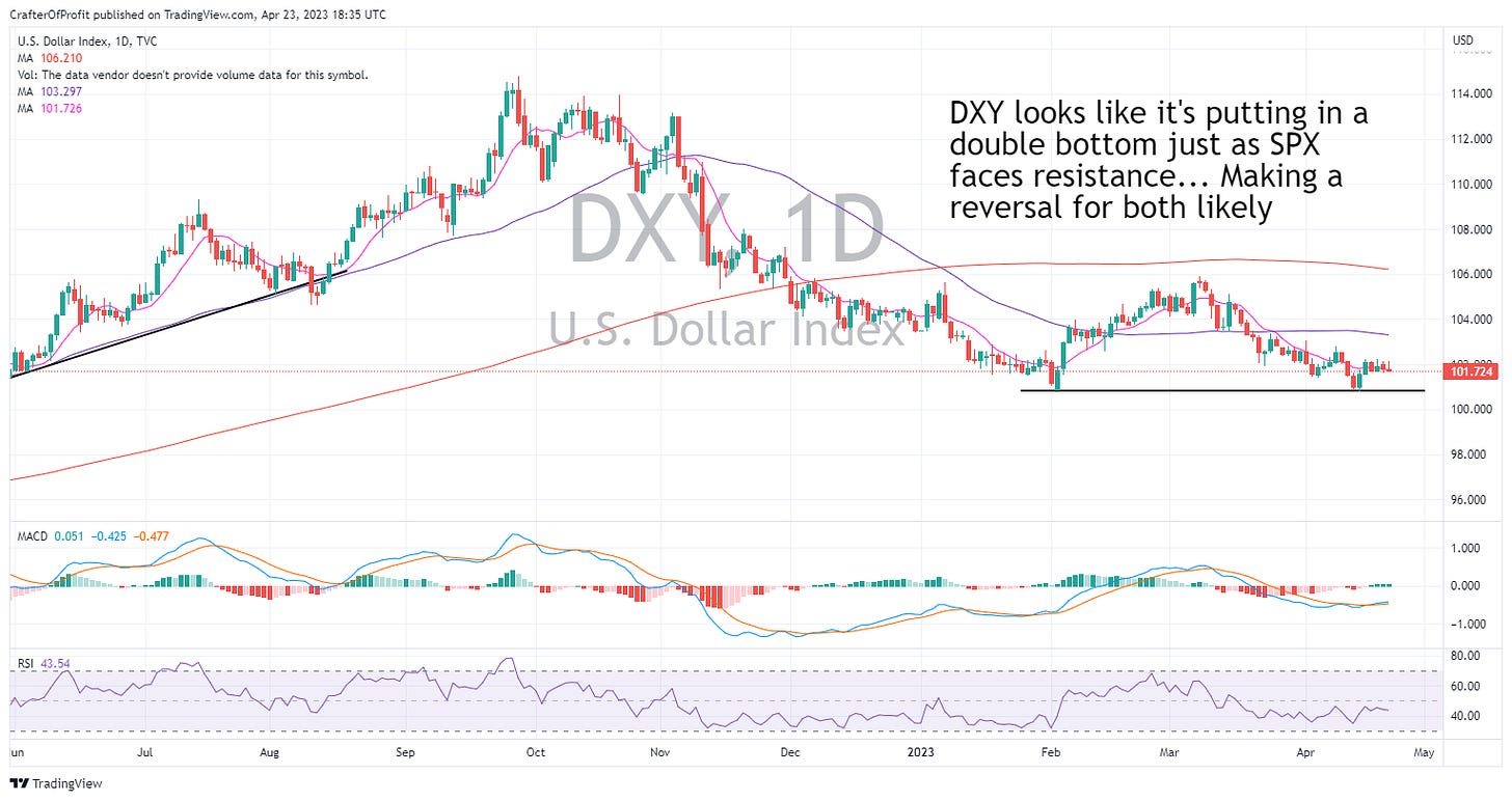 And at the same time, the dollar index looks like it’s forming a double bottom.