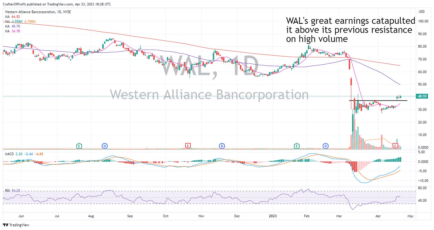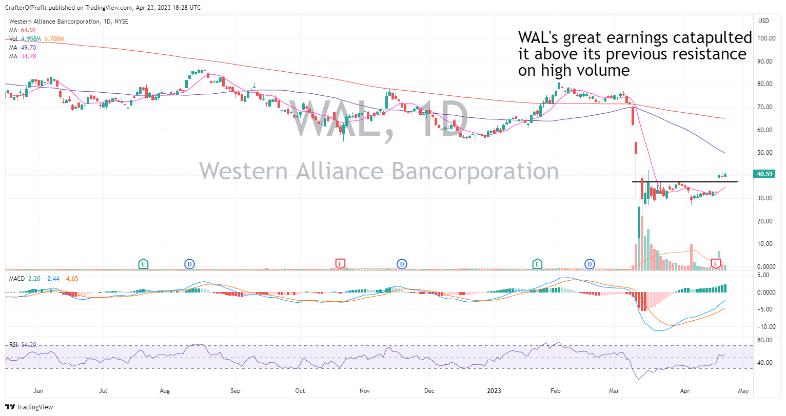 Its report sent the stock surging 20% on the session. And it gapped out of its prior trading range. WAL is likely going to consolidate a bit here and then continue heading higher.