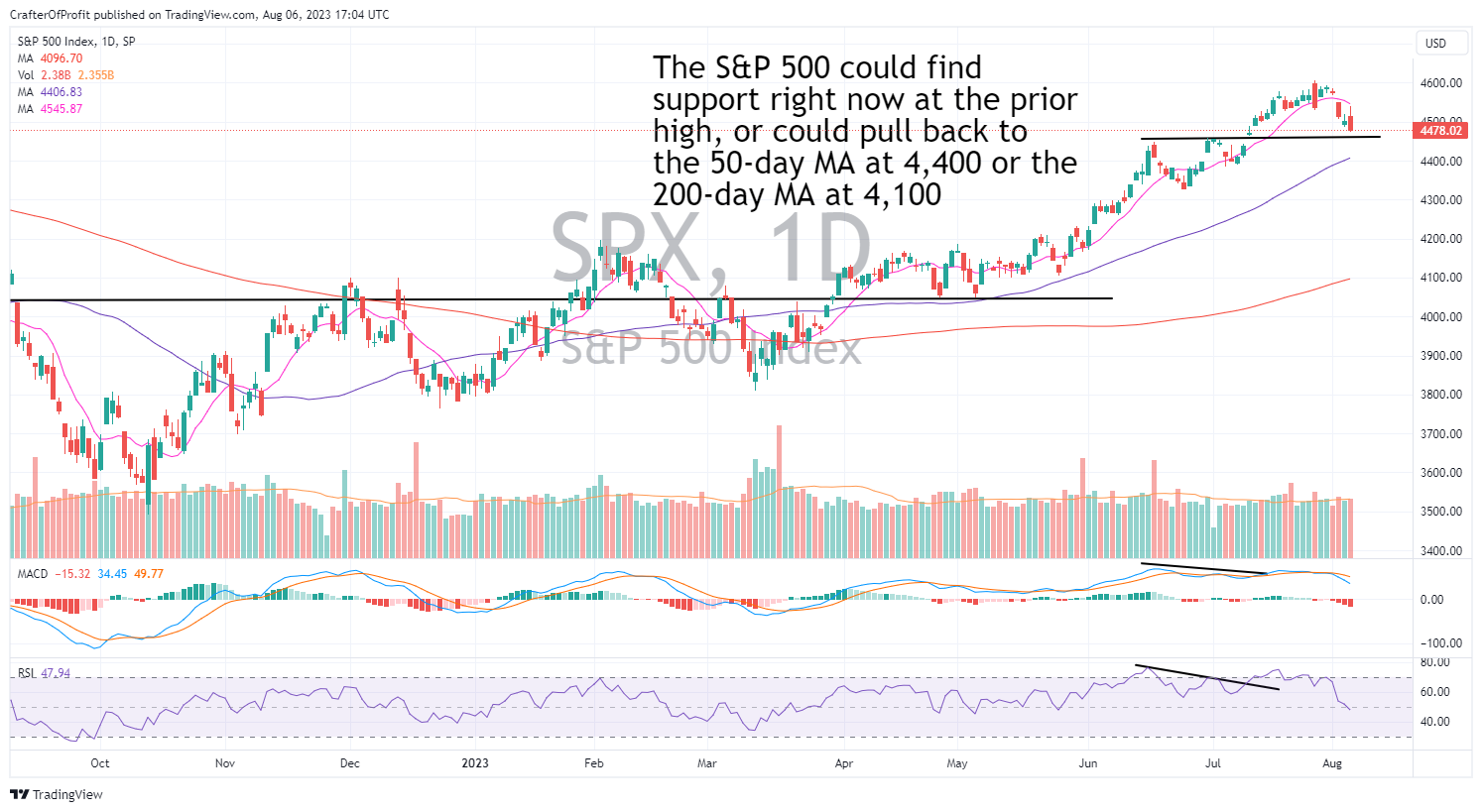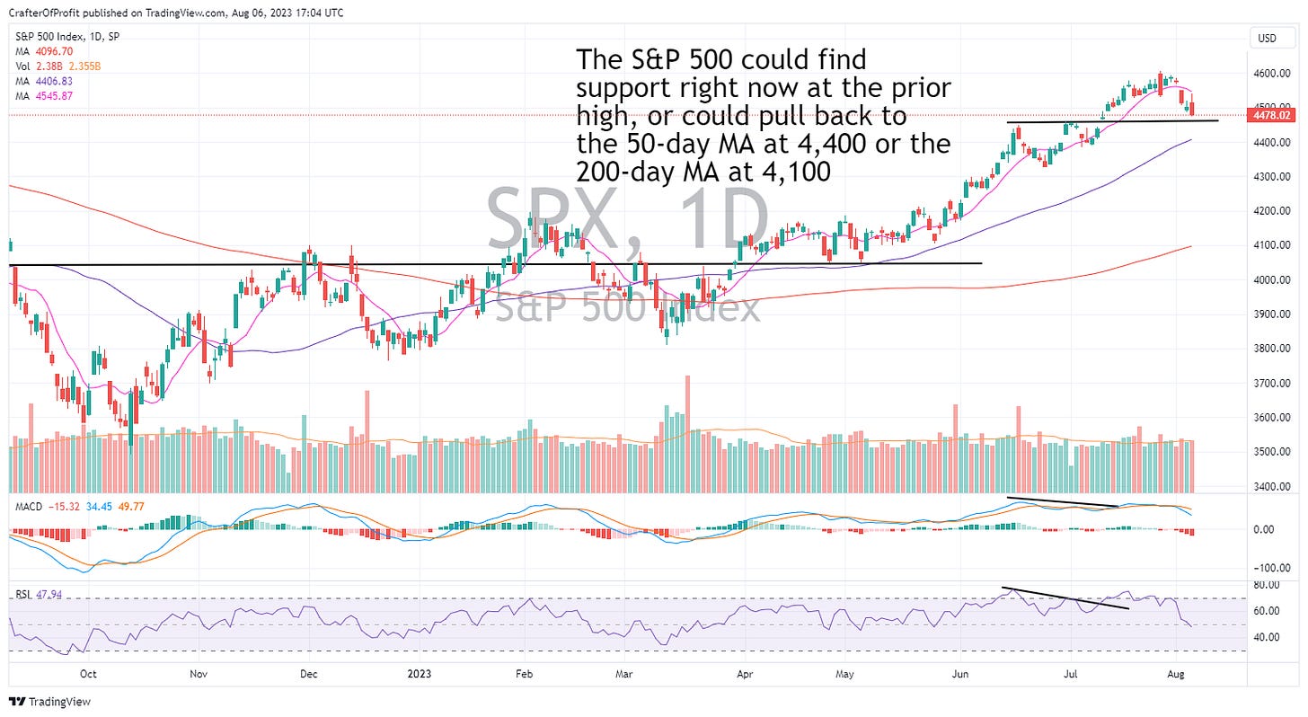 But what the market needs to prove to us is how deep this pullback will go. I have a couple support levels by looking at the S&P 500 Index chart.