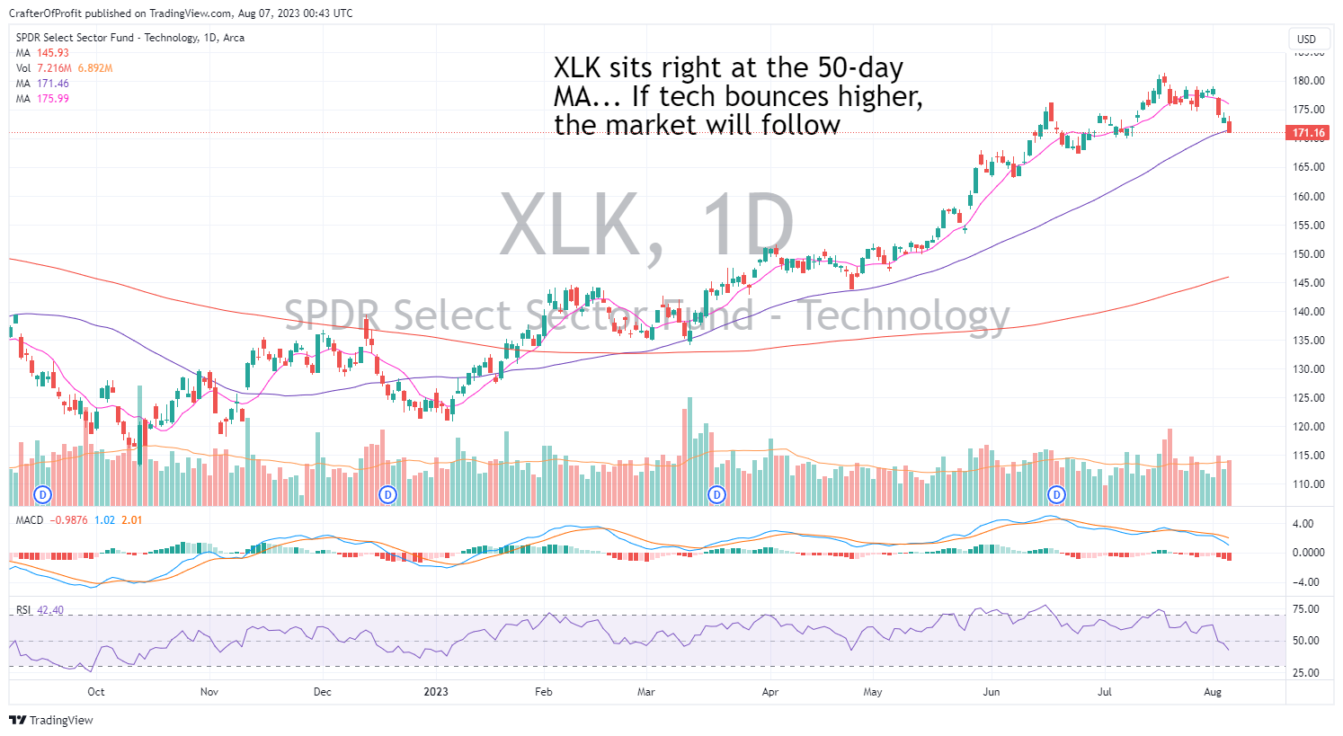 One reason I think this pullback may be over now is that the Technology Index, as measured by $XLK ETF is sitting right on it’s 50-day MA.