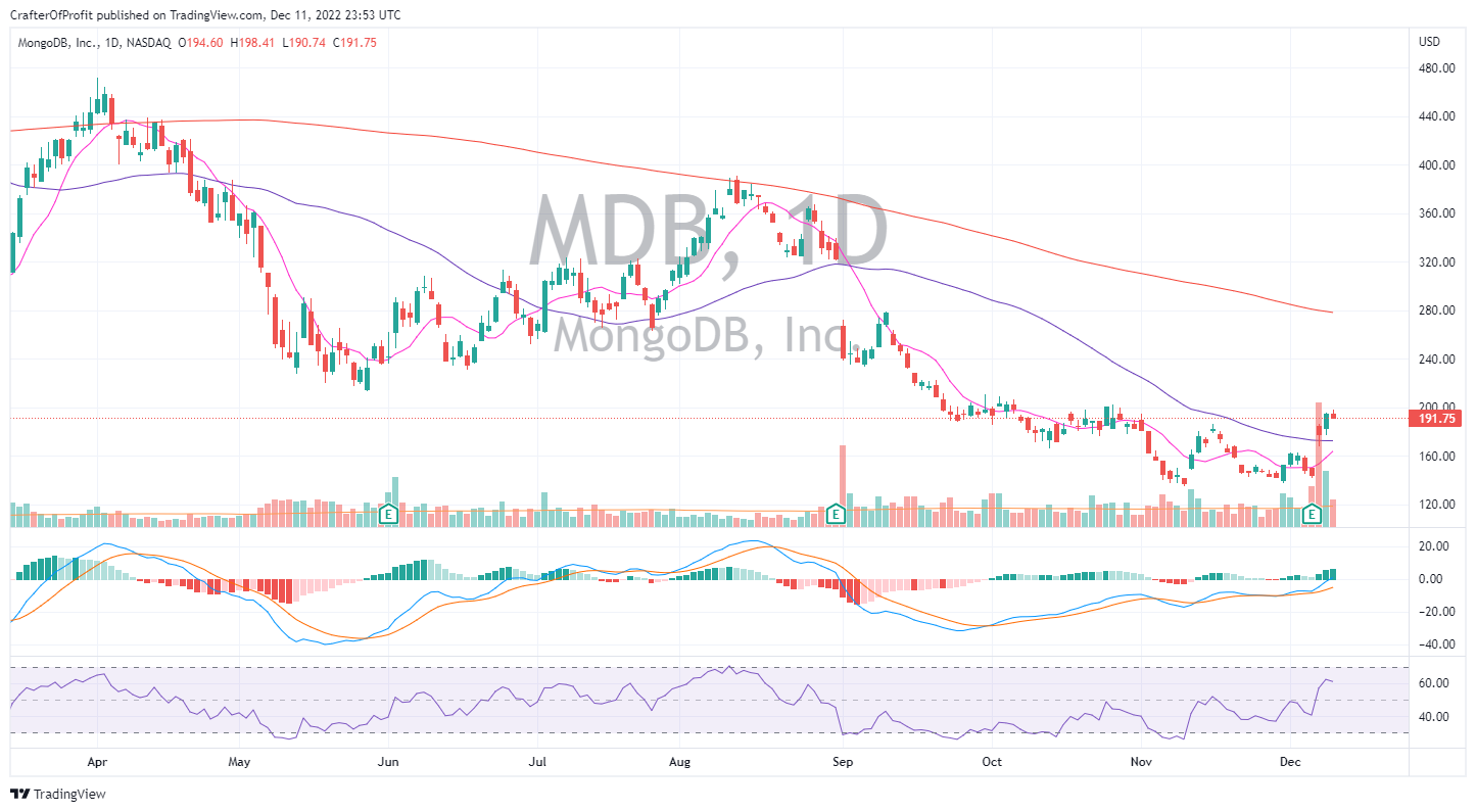 Again we have another earnings beater. $MDB is a more well-known company than the rest. It was a darling during the tech runup last year, but has since come to earth.