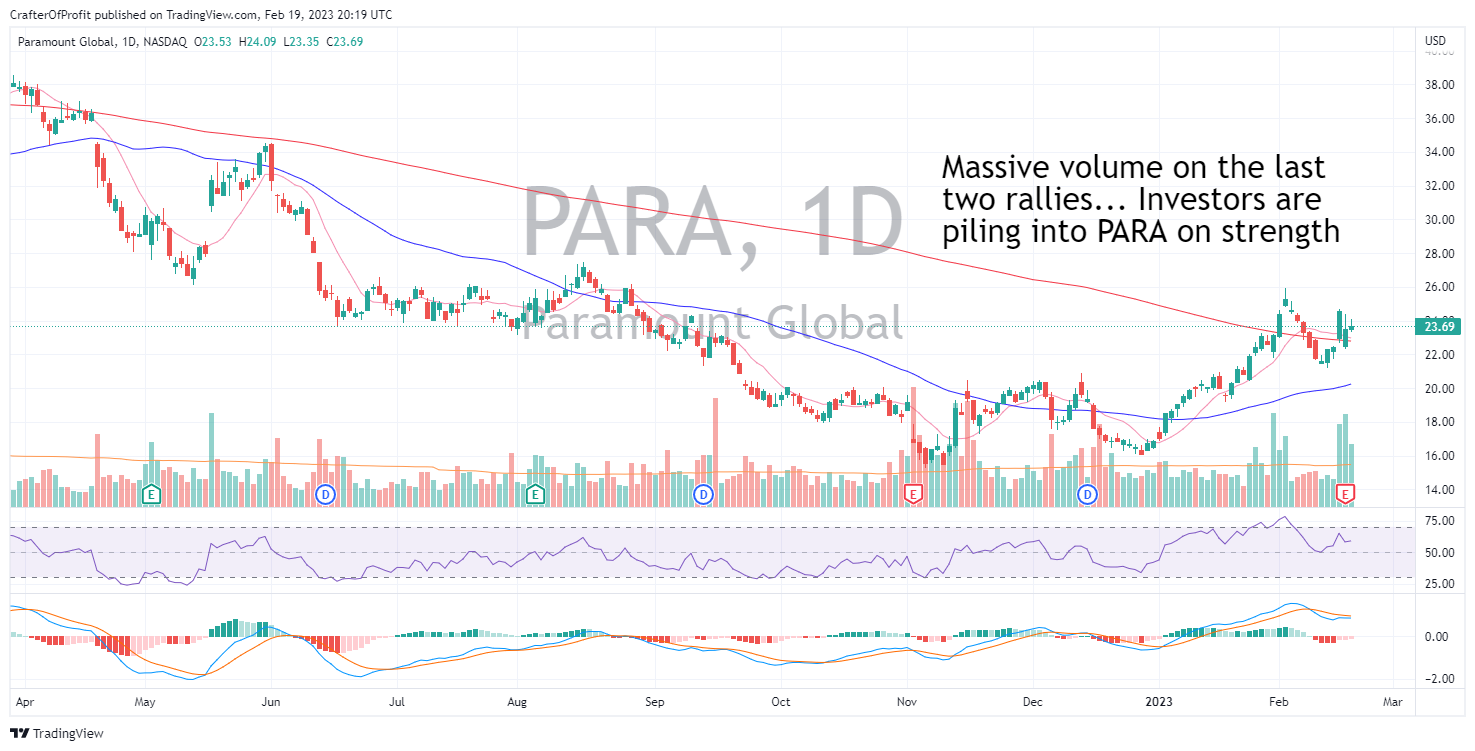 Much like Roku, Paramount leaped over its 200-day MA on high volume after its earnings report last week.