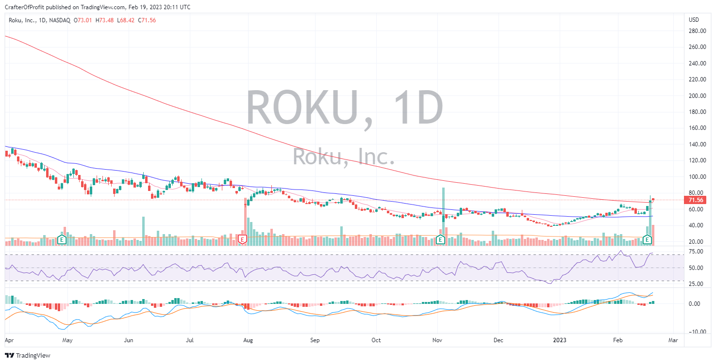 And this pushed shares above the 200-day MA on high volume last week. And I think it will use that as support and push higher in the coming weeks. Analysts and investors alike need to readjust their expectations for Roku based on its latest earnings report.