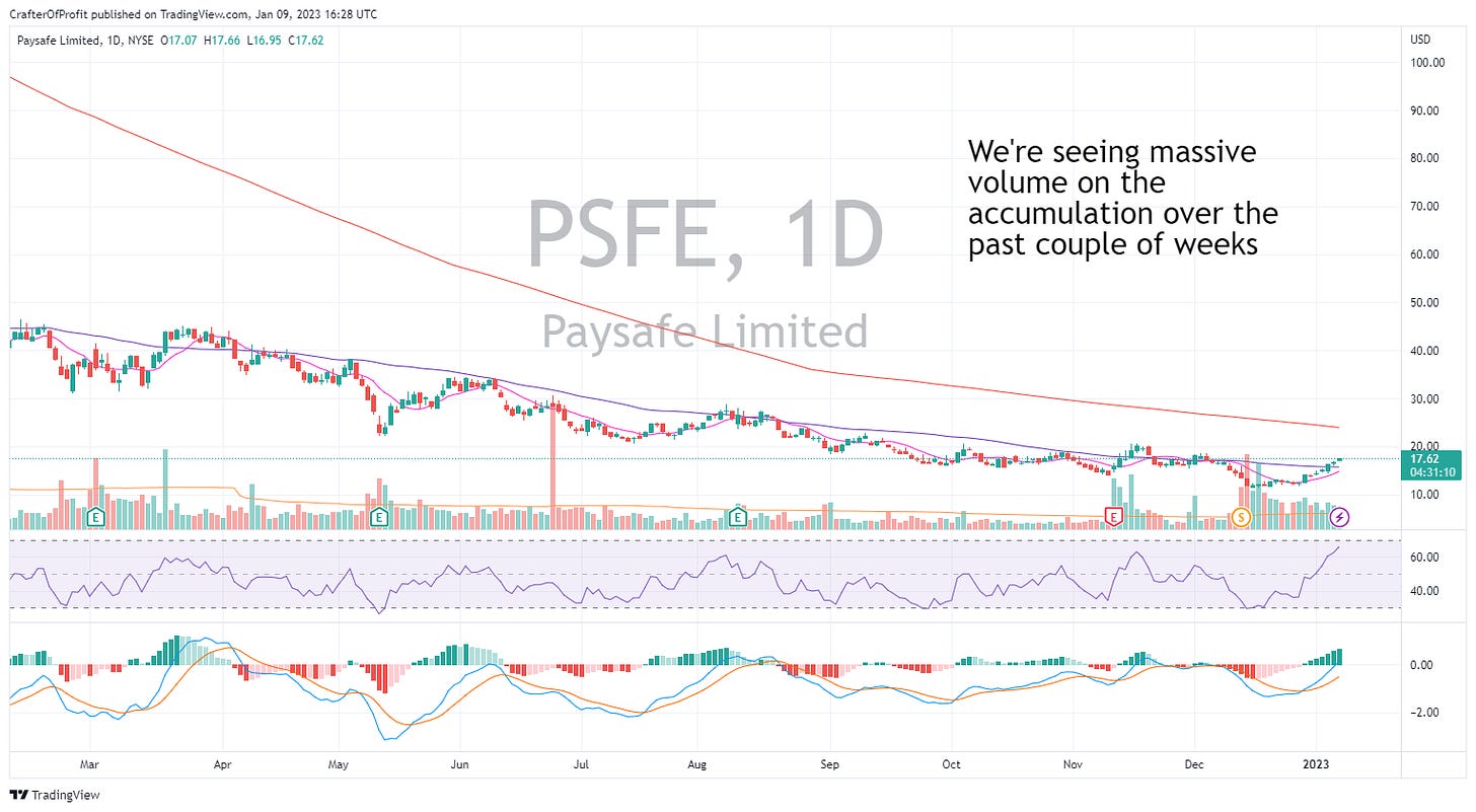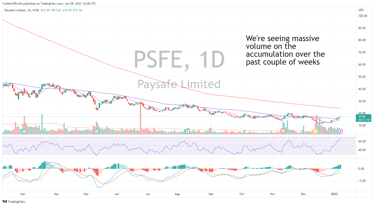 This is another company that going from bad to less bad. And we’re seeing massive accumulation over the past couple of weeks. This is huge volume.