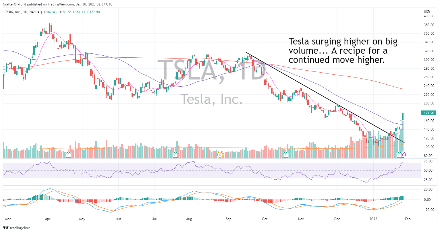 Tesla trends with the best of them. When the Tesla fanatics get behind the stock, it tends to move further than we think.