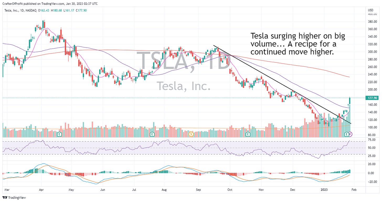 Now typically I’d steer clear of a big company. They don’t tend to drift higher as much as smaller companies after these episodic pivots. But we have to make an exception with Tesla.
