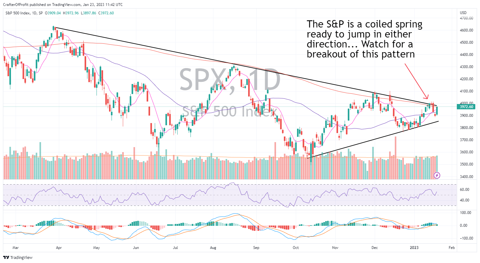 The market is a coiled spring ready to explode… Look at the chart of the S&P 500 below.