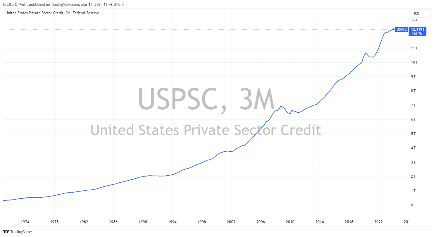 And U.S. private sector credit continues making new highs. Now US businesses and citizens have over $12.3 trillion in credit issued to them. That’s a staggering amount of credit, but as long as this continues rising, we’ll continue to see a strong economy.