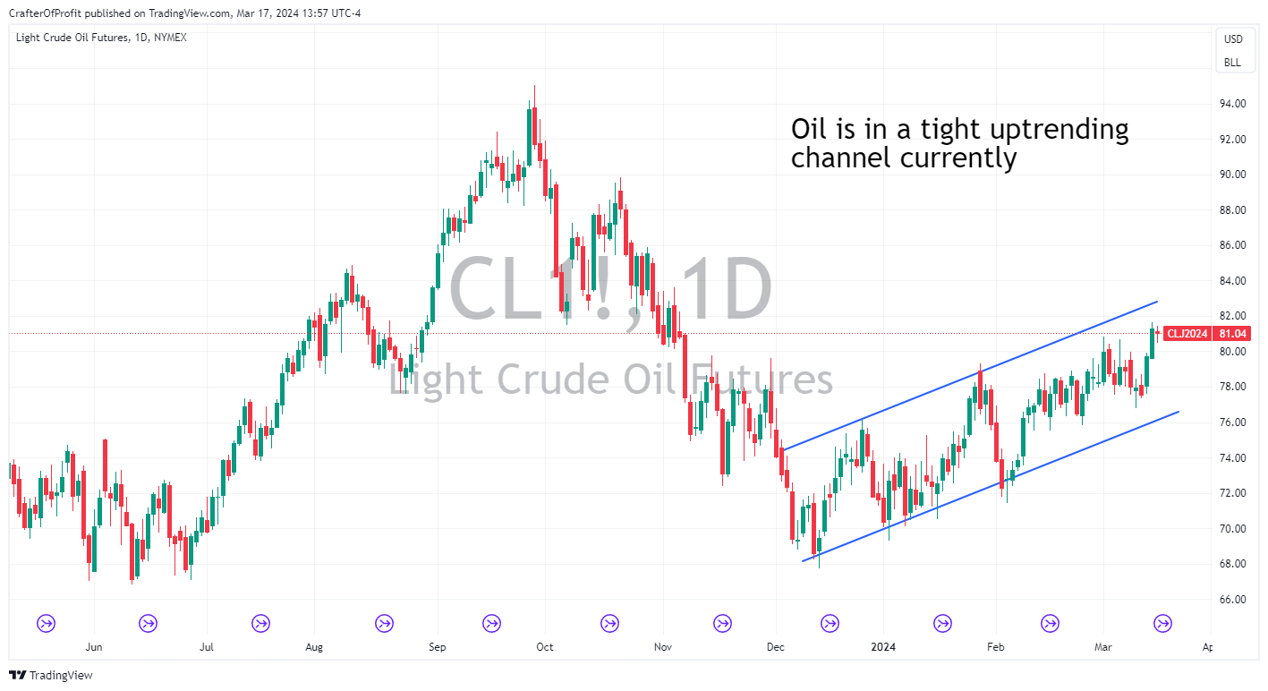 But more importantly, for the CPI and PPI weightings, crude oil has caught a bid this year.