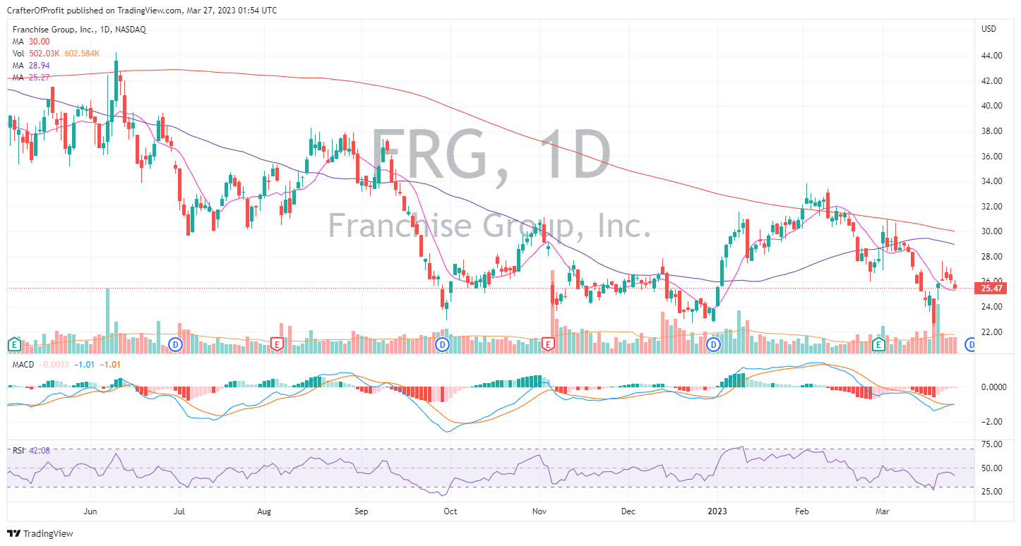 And we have another buyout candidate. This one is Franchise Group ( FRG 0.00%↑ ). This company owns a collection of brands and stores including Pet Supplies Plus, American Freight, The Vitamin Shoppe, Badcock Home Furniture, and more.