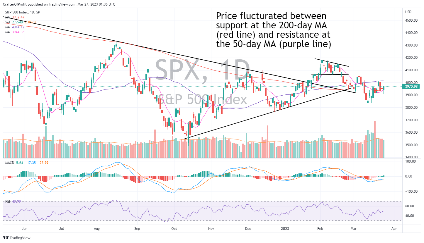 The market is in a tug of war. It’s oscillating between the support of the 200-day moving and the resistance of the 50-day MA.