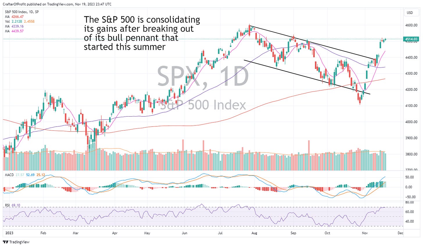 So be on the lookout for these. But for now the market is ripping higher. And it appears to be holding these new, elevated levels. We can see the market consolidating the past three days after surging higher on Tuesday.