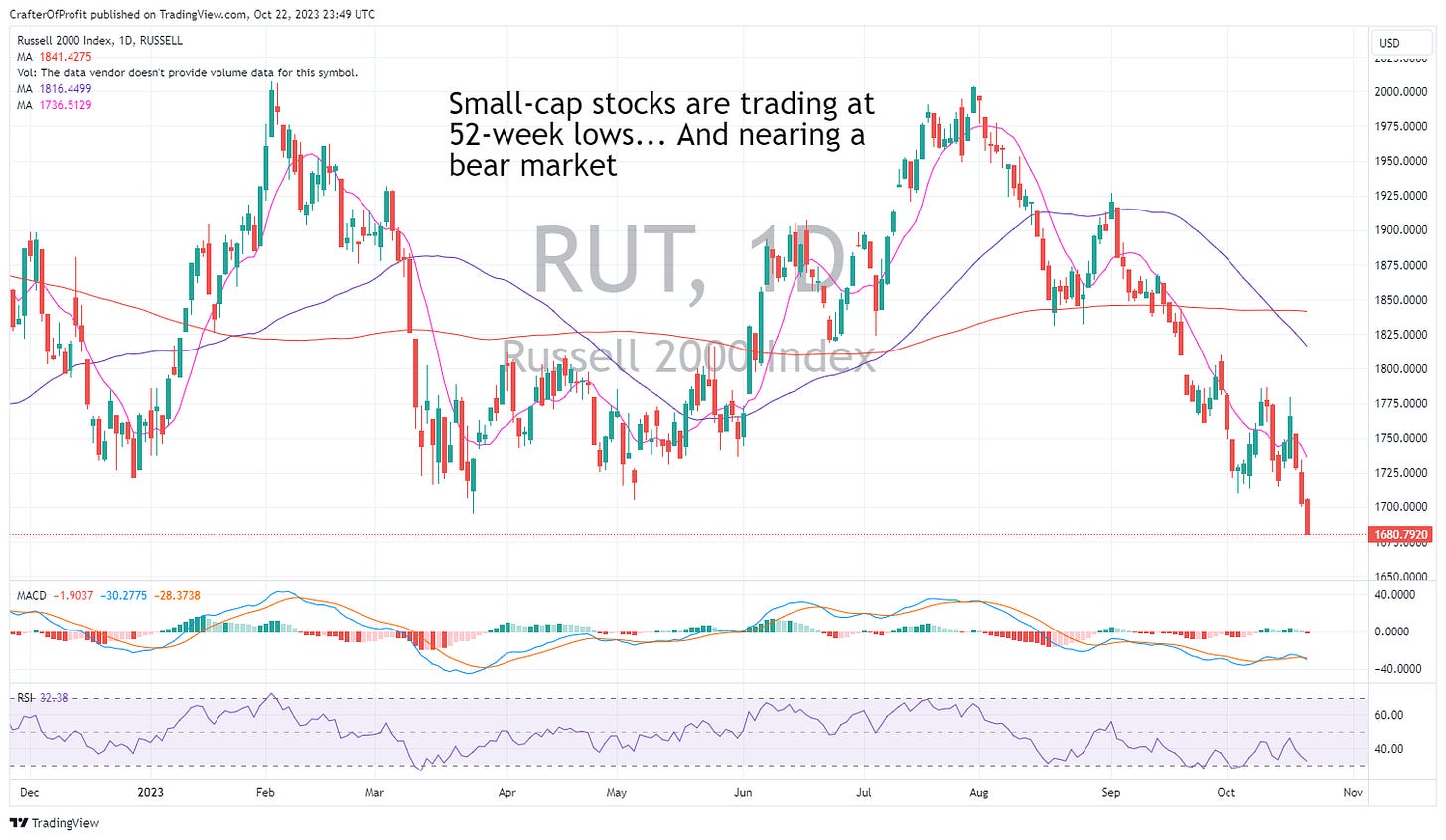 But the market is not healthy in general. If we look at the Russell 2000 small-cap index, we can see the market is trading at 52-week lows.